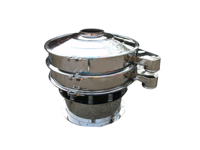 旋振篩(圓形振動篩)由立式振動電機作激振源,因為其上下端重錘安裝在發動軸兩側,使電機的旋轉運動轉變為垂直、水平、傾斜的三次元運動。  旋振篩產品特點:  設計精巧,耐用,適合任何粉類以及粘性液體的篩分。  操作簡單,換網方便,易于清洗。  篩網無阻塞,粉末無飛揚。  雜質以及粗料自動排出,并且可以與給料設備、輸送設備配套使用,處理量大,生產效率高?! 〕叽缧?,節省空間,易于移動?! ∫子陴B護,可單層或多層使用。  篩網設計合理耐用,換網只需3-5分鐘?! 『Y網可達5層,篩分出6種不同顆粒大小的物料